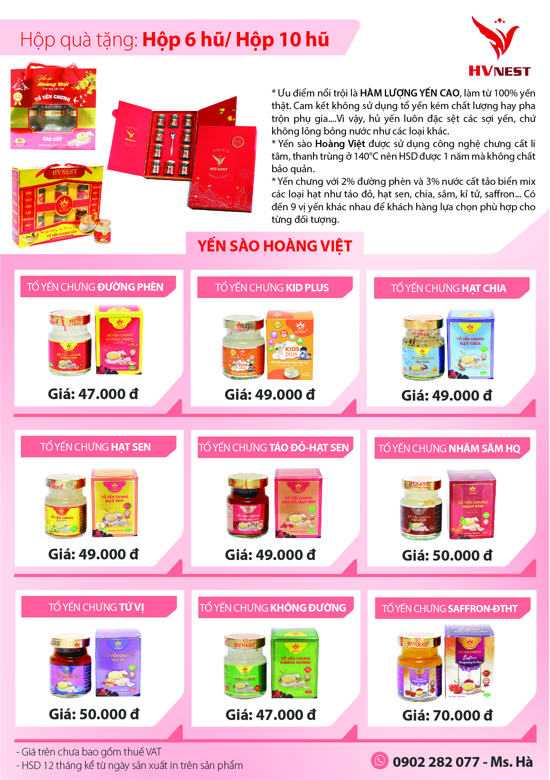 Yến hũ chưng sẵn Hvnest lựa chọn hoàn hảo dành cho sức khoẻ của bản thân và gia đình nhờ nguồn dưỡng chất dồi dào, thành phần an toàn lành tính tốt cho sức khoẻ. Dưới đây là bảng giá Yến hũ chưng sẵn Hvnest mời quý khách cùng tham khảo.