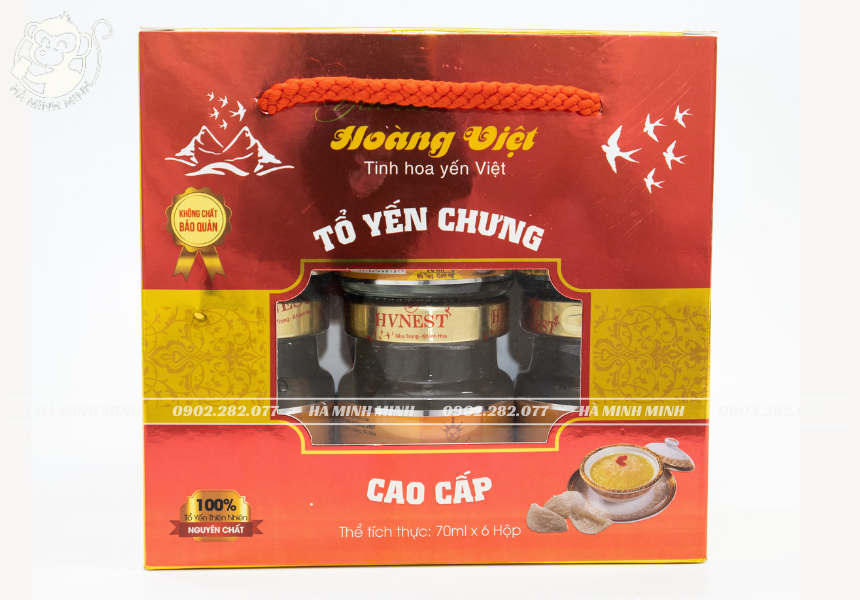 Tổ yến chưng hạt sen Hoàng Việt bao gồm: tổ yến nguyên chất, hạt sen, đường phèn, nước tinh khiết...