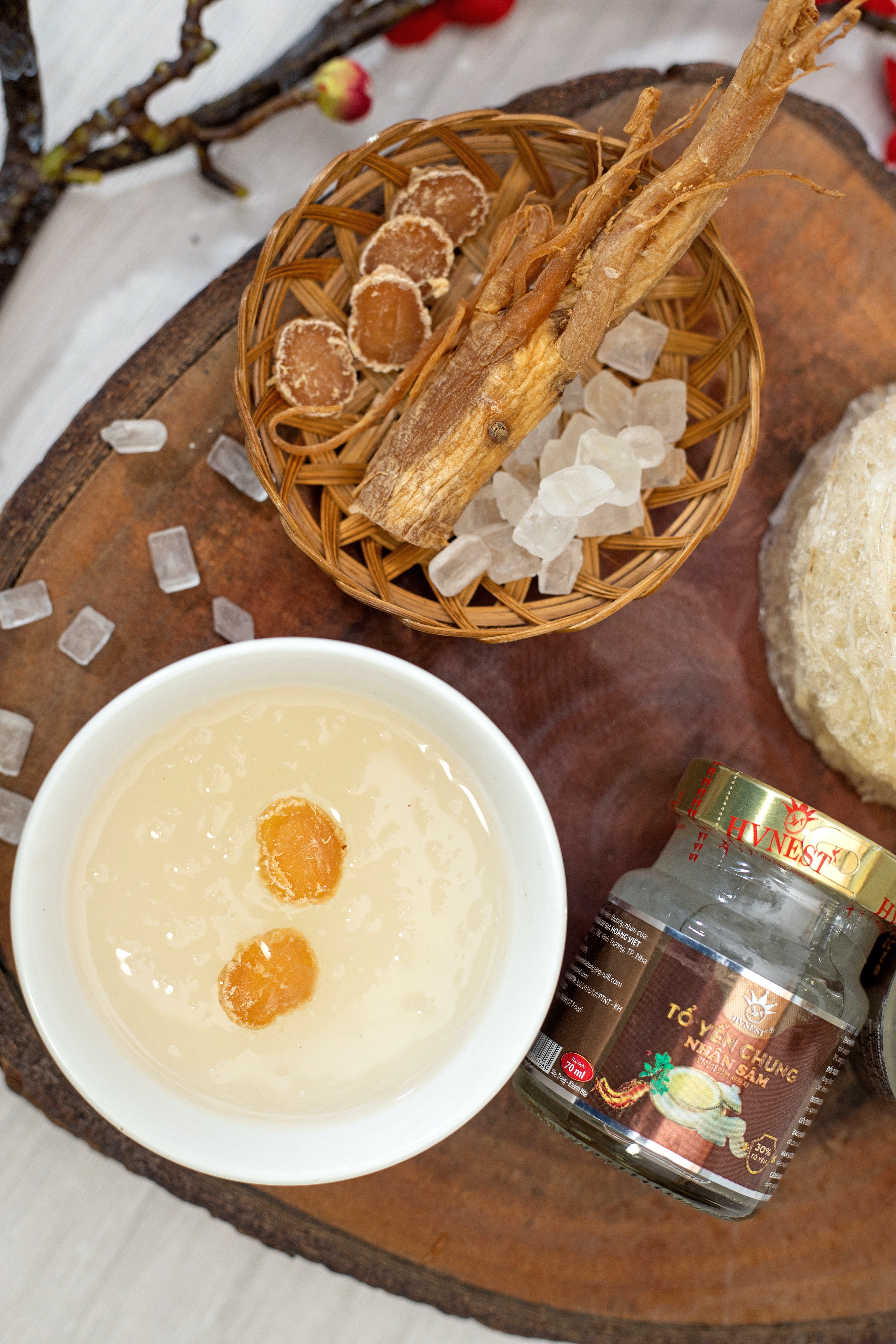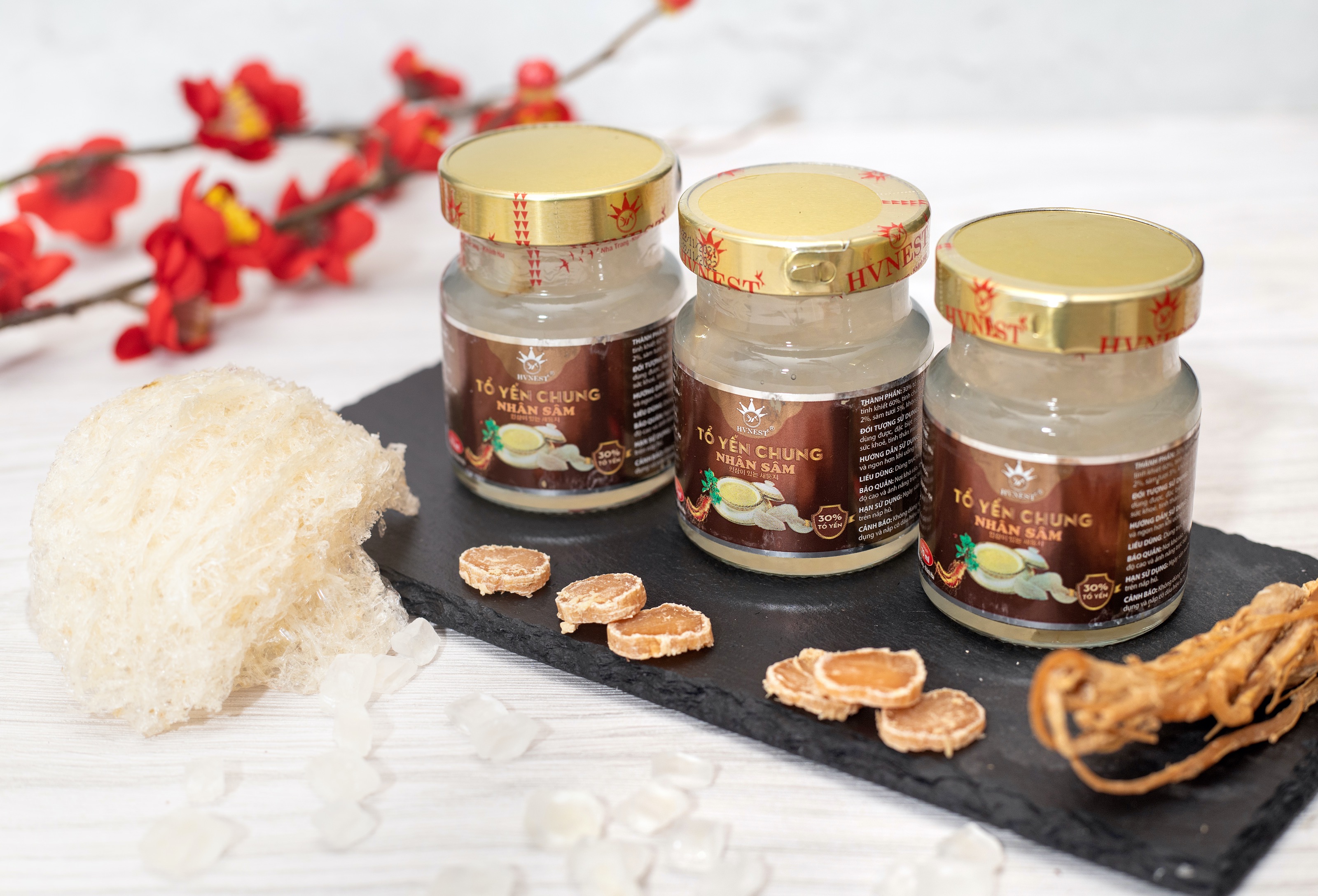 Yến chưng nhân sâm chứa 34 loại saponin, vitamin, hoạt chất, khoáng chất thiết yếu có lợi trong việc bồi bổ sức khỏe và phòng ngừa bệnh tật, là món ăn dinh dưỡng, cách chế biến đơn giản, tốt cho mọi lứa tuổi. Tổ yến chưng cùng với nhân sâm và đường phèn là sự hòa quyện độc đáo, mang vị đặc trưng thơm ngon của yến sào và nhân sâm.