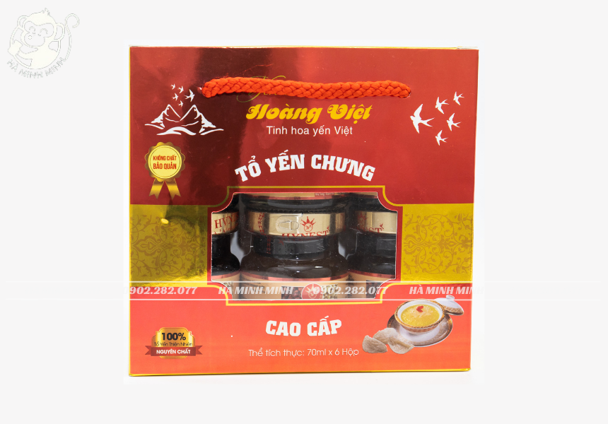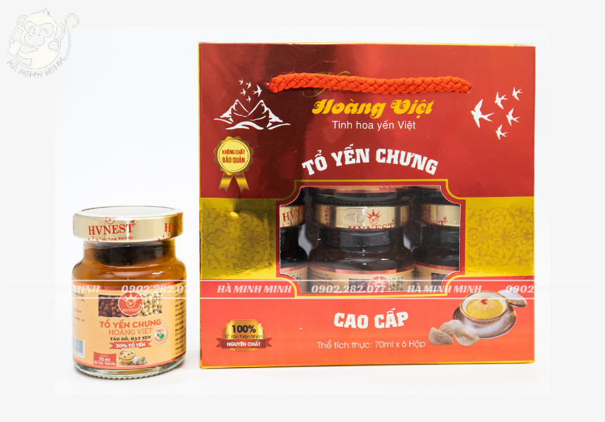 Tổ yến chưng táo hạt sen Hoàng Việt bao gồm: tổ yến nguyên chất, táo tàu, hạt sen, đường phèn, nước tinh khiết...