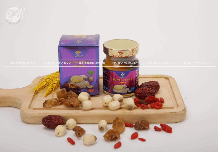 Tổ yến chưng tứ vị (táo đỏ, sen, nhãn nhục, kỉ tử) giúp cải thiện sức khỏe ăn uống ngon miệng, giúp hấp thu thức ăn tốt, tăng cường sức đề kháng cho cơ thể, cải thiện thính giác. Yến sào tứ vị mang hương vị ngọt thanh đậm đà, rất tốt cho sức khỏe của các thành viên trong gia đình.