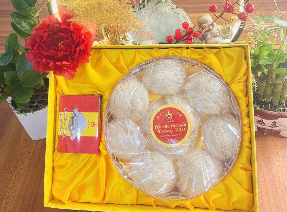 Yến nguyên tổ rút lông thượng hạng Hoàng Việt bao gồm tổ yến nguyên tổ, nguyên chất 100%.